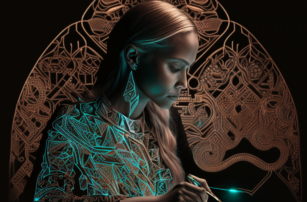 Obrazek w kolorkach marki zrobiłam oczywiście razem z talentem sztucznej inteligencji. Postać ma wiele palców, ale cóż, pracująca z domu małżonka to nie jakiś tam zwykły człowiek, prawda?